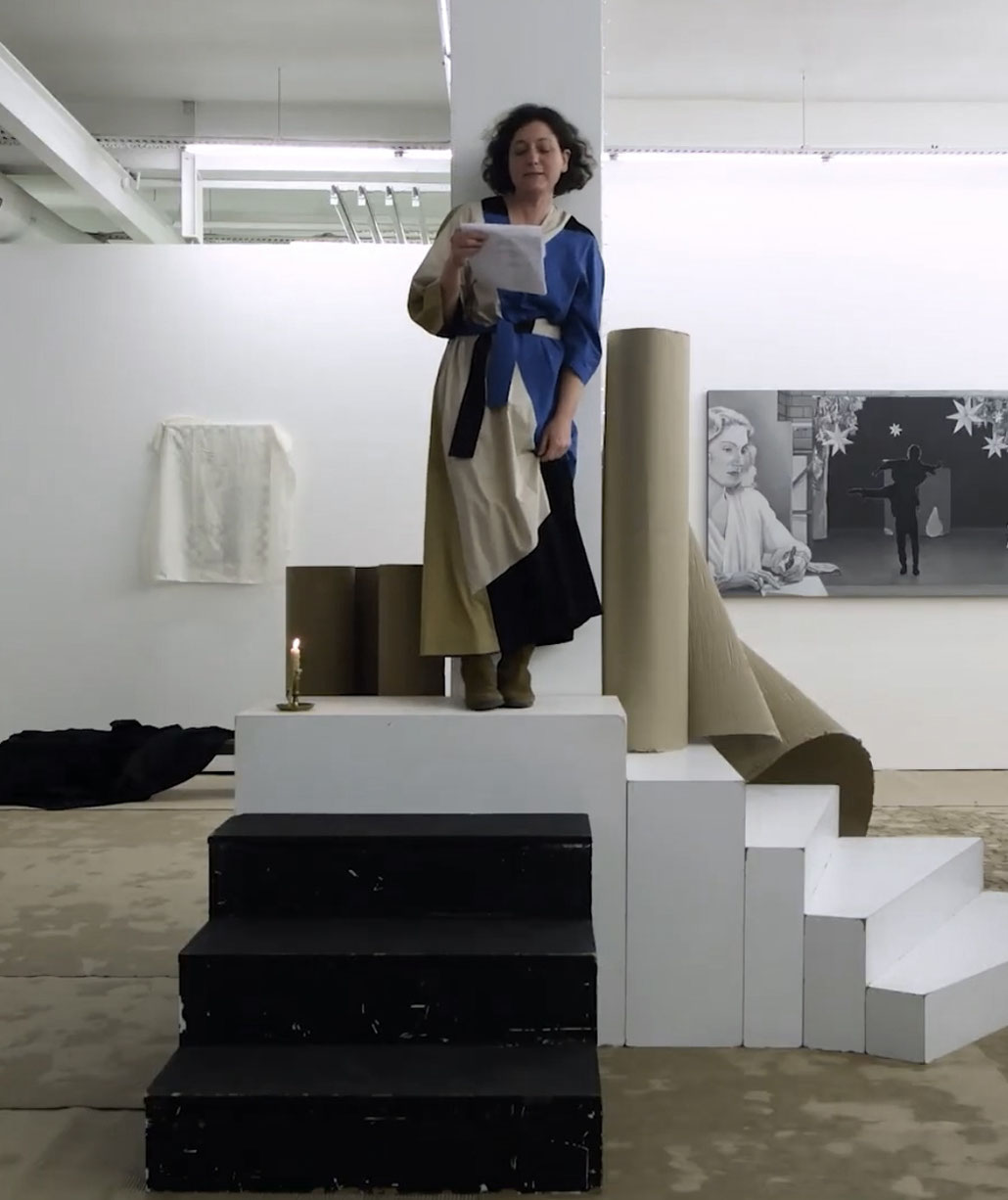 a translational space between painting and performance. Leylâ Gediz approaches painting as a thought process and