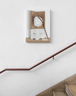 The title: In Photoshop applications, transforming the background into an ordinary layer eliminates the idea of a backdrop. As background loses its gravity, all layers and figures can shift and move independently. Intruiged by the shifts of diasporic beings across the world, Leylâ Gediz is devoted to expanding the field of painting, its settings and its audiences. On this occasion, Gediz will display a group of works that reflect on the possibilities of being unrooted stemming from her personal experience of coming from Istanbul and living in Lisbon.