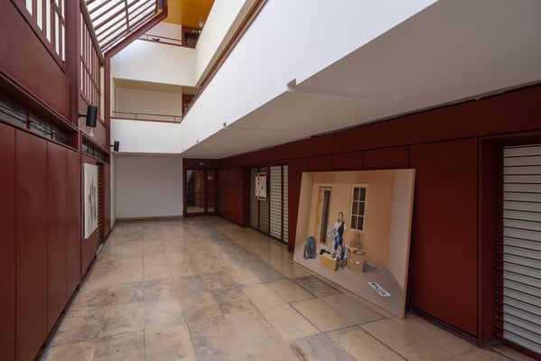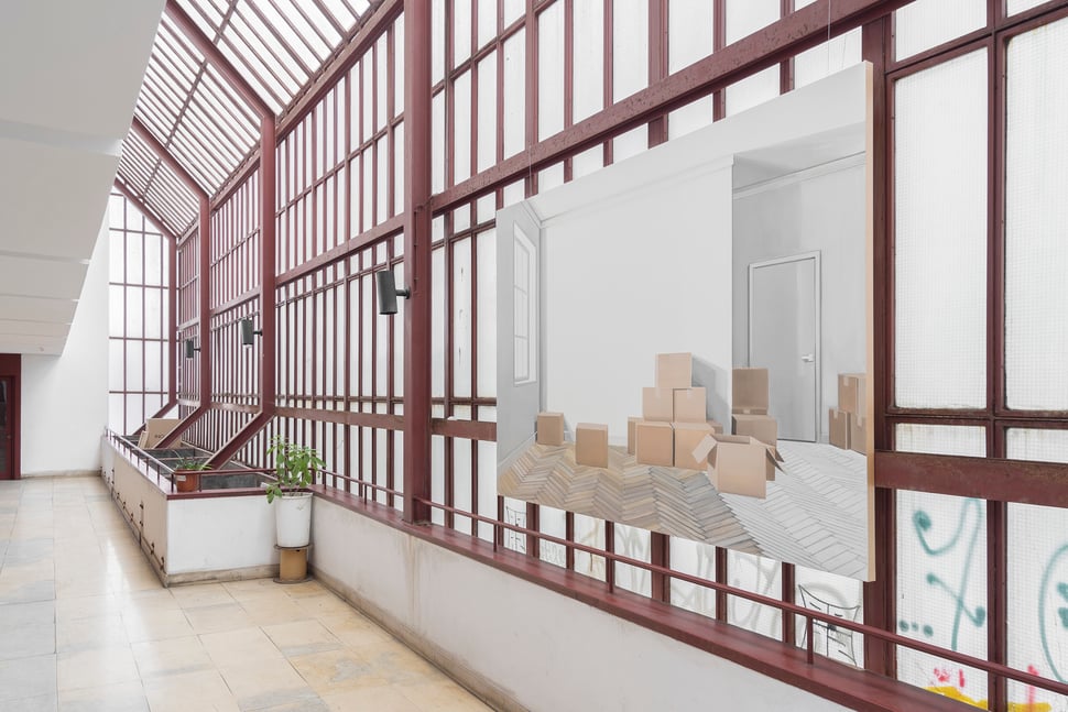 In the turbulent square of Martim Moniz, stands a robust building by the architect Bartolomeu Costa Cabral. Invited by TECLA PLAY Cultural Association, artist Leylâ Gediz presents an installation of paintings in the interior gallery of the building, which has been cut off from the square over time and plunged into silence. The exhibition, which can be reached by walking up the ramp on the building’s façade, will allow the site to be visited, and the achitecture to function as the public space it was designed to be.